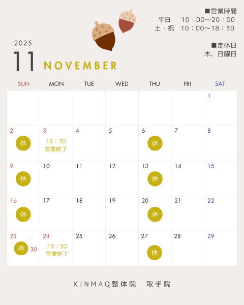11月のカレンダー